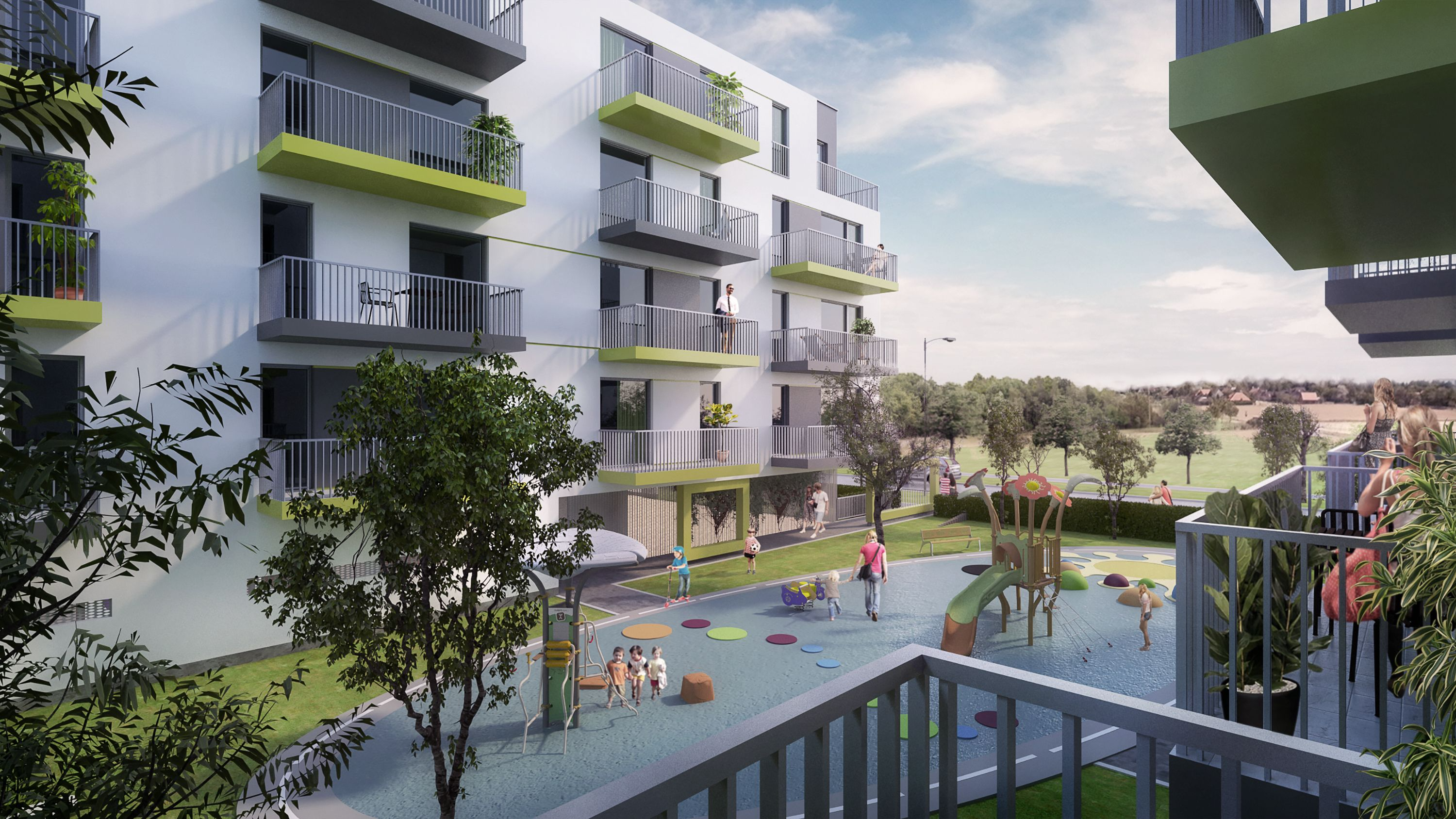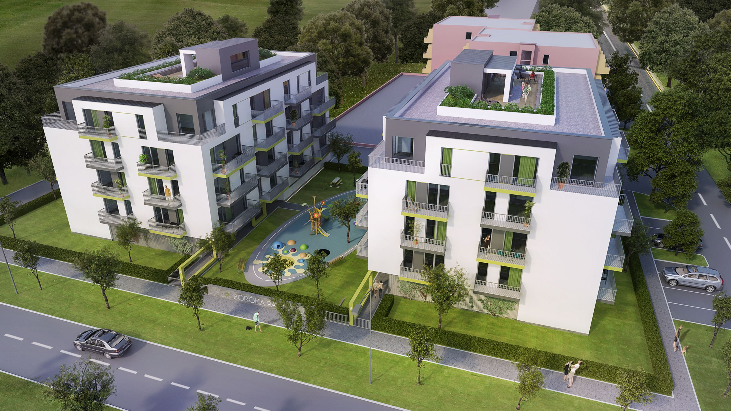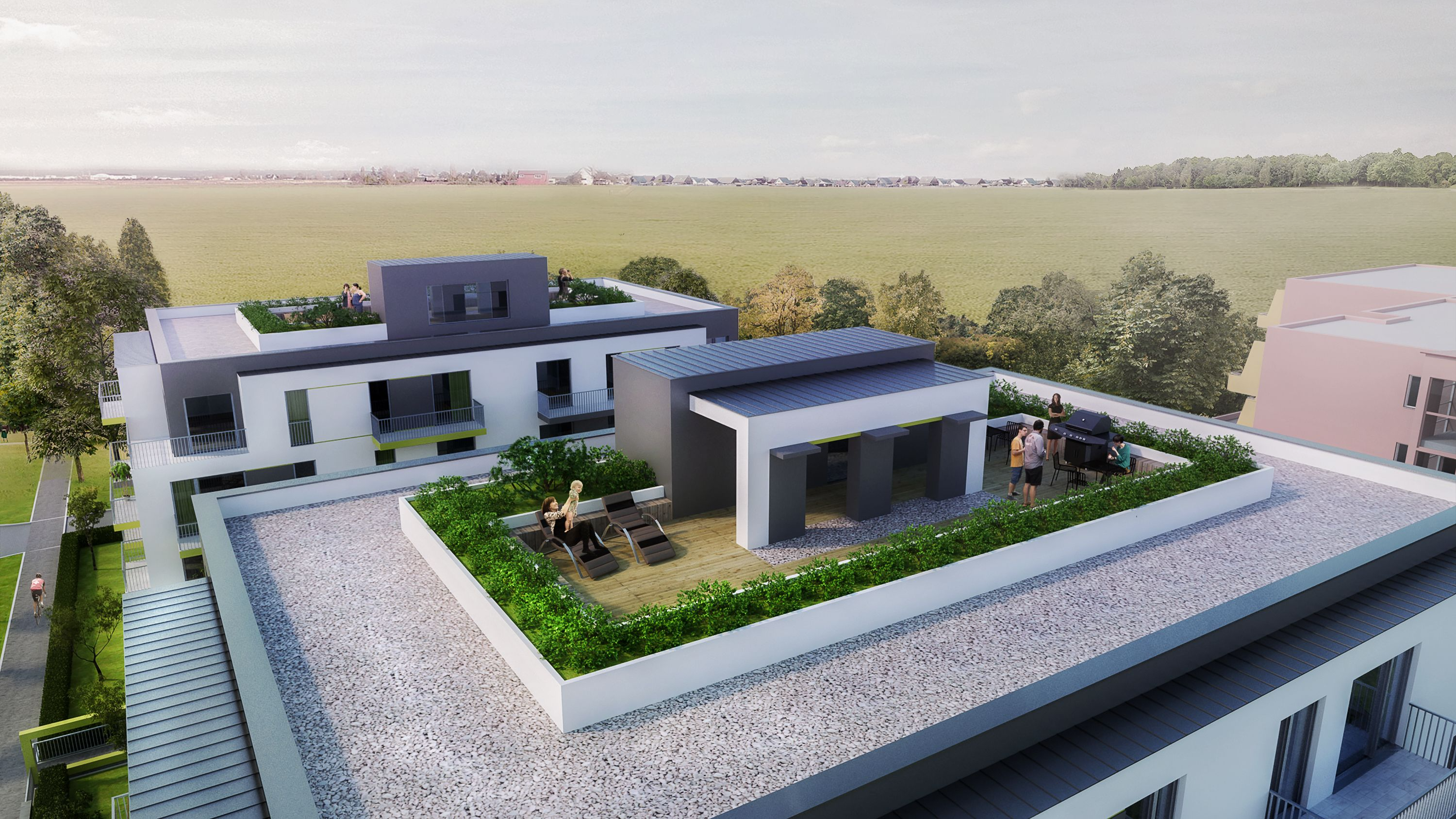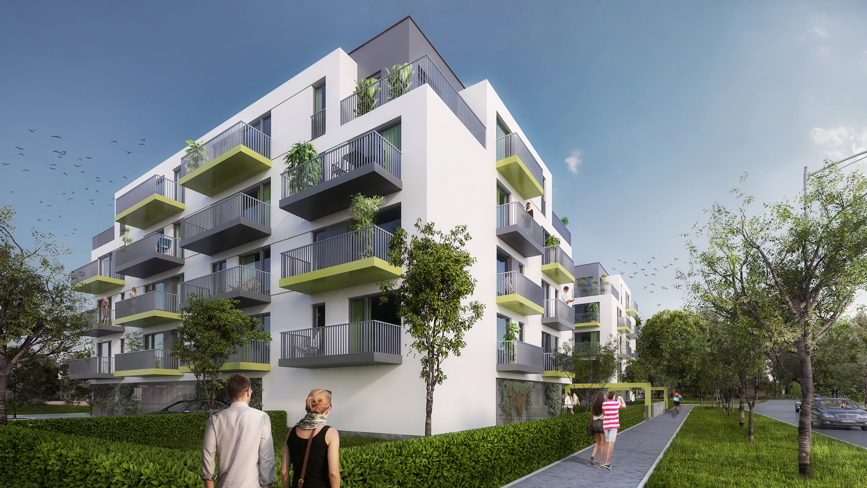 Creation of a new “suburbcentre” in the town of Kecskemet, with residential, commercial, service and institutional buildings. The new suburb center is being created to ensure a settlement that is lively day and night, with short distances between the various functions required by the residents, as well as an adequate proportion of public-, green- and recreational areas, appropriate public transport connections with the town centre and other focal points in Kecskemet. The project started with the residential developments, and, parallel with it, the commercial and service functions are under planning. The developer required the design of “value for money”, technically average apartments. The 63 apartments built in Phase 1 of the project were handed over at the end of 2018, and the construction of the 126 apartments of Phase 2 started in 2019, in two building units. The apartments range from 2-room ones (livingroom plus bedroom), as well as studios and 3-4 room units. The façade is simple and structured, the surfaces are created with an uncomplicated plaster-architecture,in accordance with the requirements of the developer.