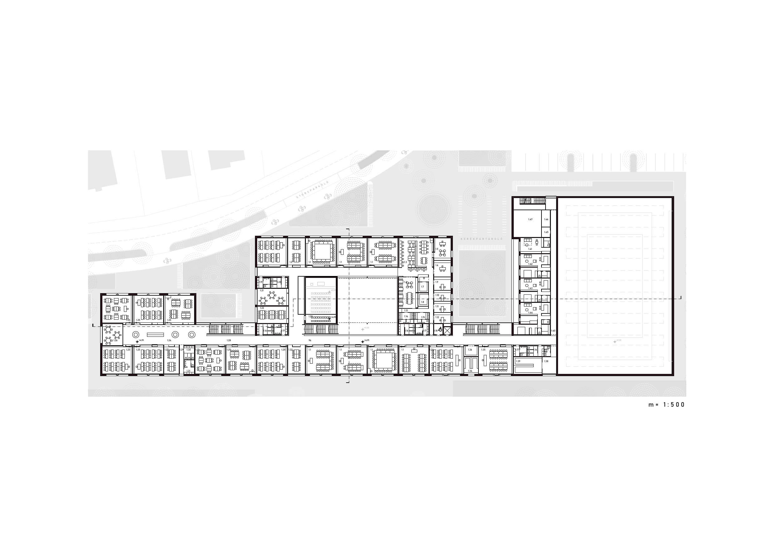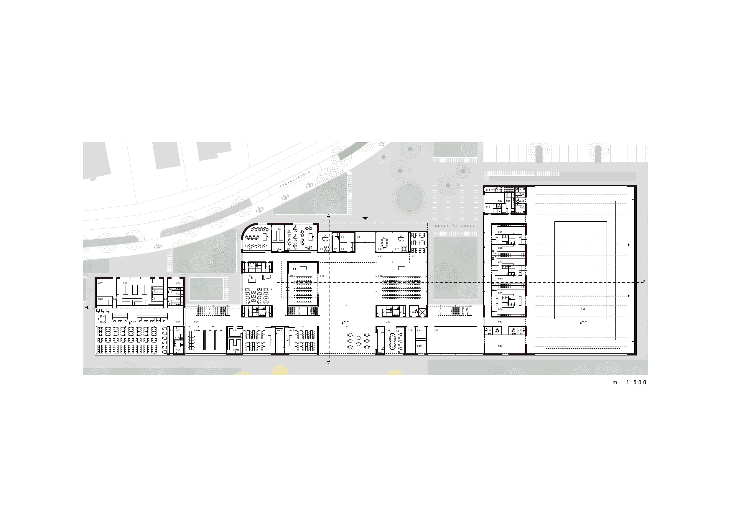 - Az épület külső, közforgalmi fogadó és megérkezési terei hiánypótlóan növeljék a közhasználatú városi terek és zöldfelületek mennyiségét és minőségét.